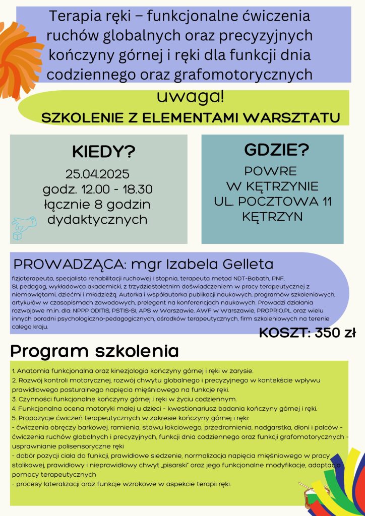 Termin potwierdzony!25 kwietnia 2025 godz. 12.00 – 18.30 – 8 godz. dydaktycznych.